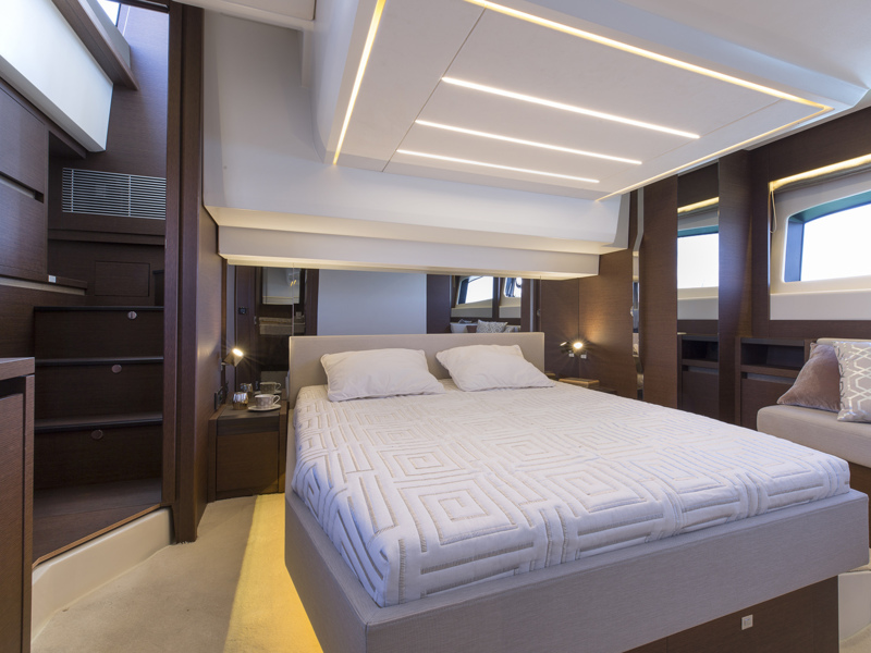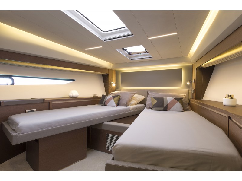 - Stern master cabin with a walk in wardrobe, separate en-suite head & shower compartment, a home from home.