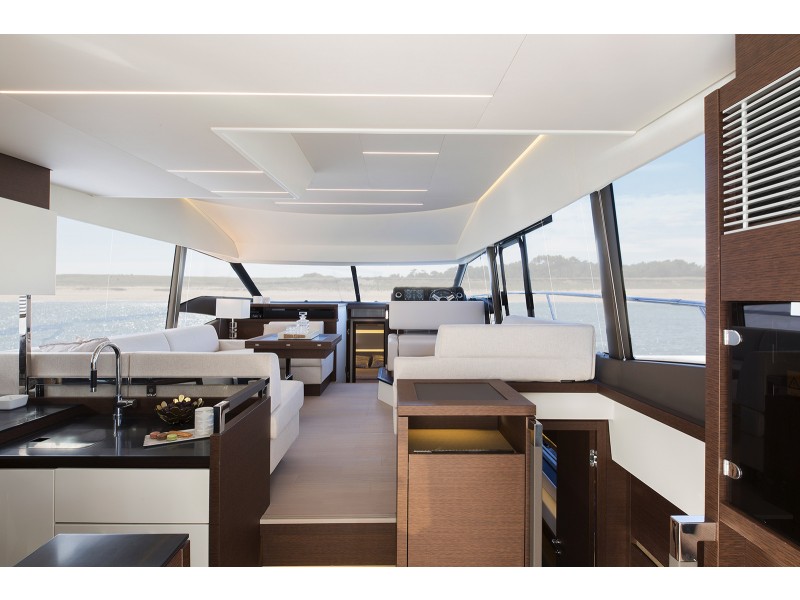 - Four wide forward facing seats at helm, a fully integrated dashboard and large chart table area for ease of use and comfort.